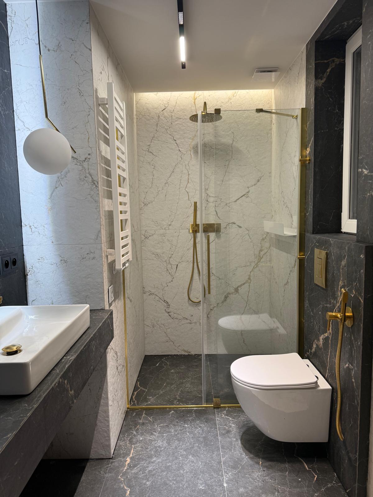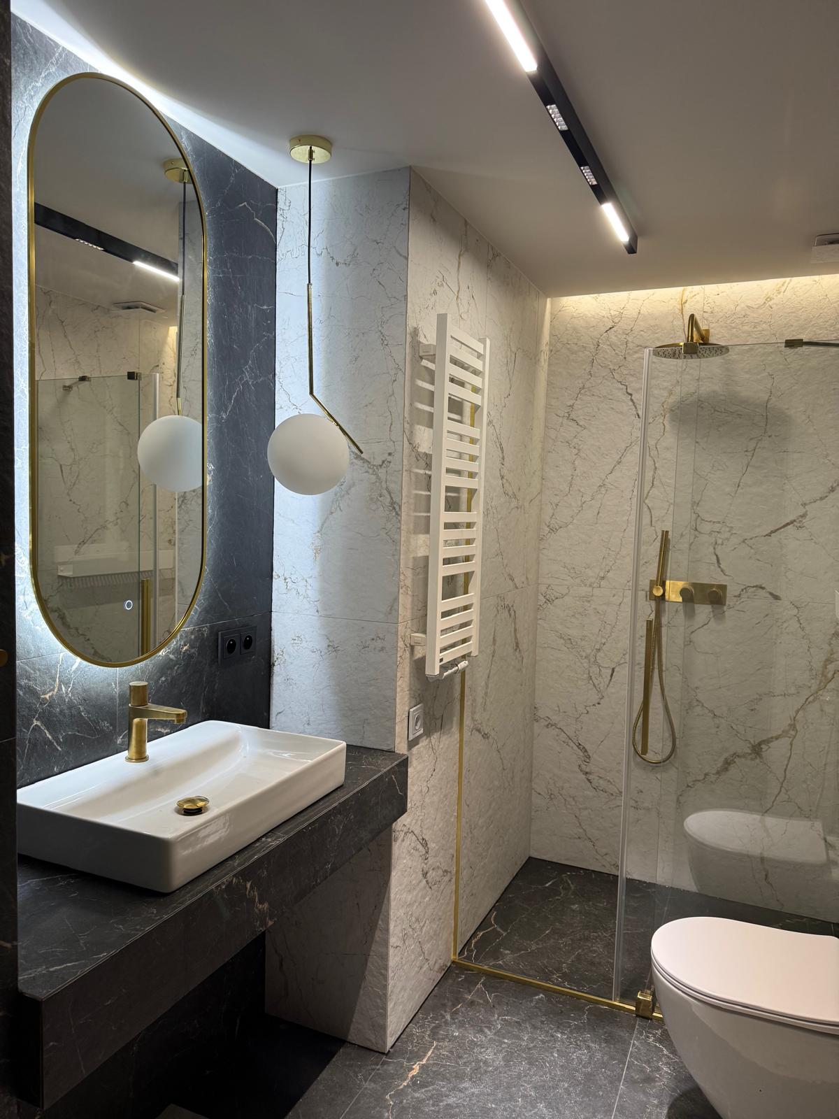Łazienka robi wrażenie od pierwszego spojrzenia. Połączenie marmurowych powierzchni, złotej armatury i idealnie dopracowanego oświetlenia tworzy przestrzeń, która wygląda jak z katalogu. Każdy detal — od podświetlonej strefy prysznica po...
