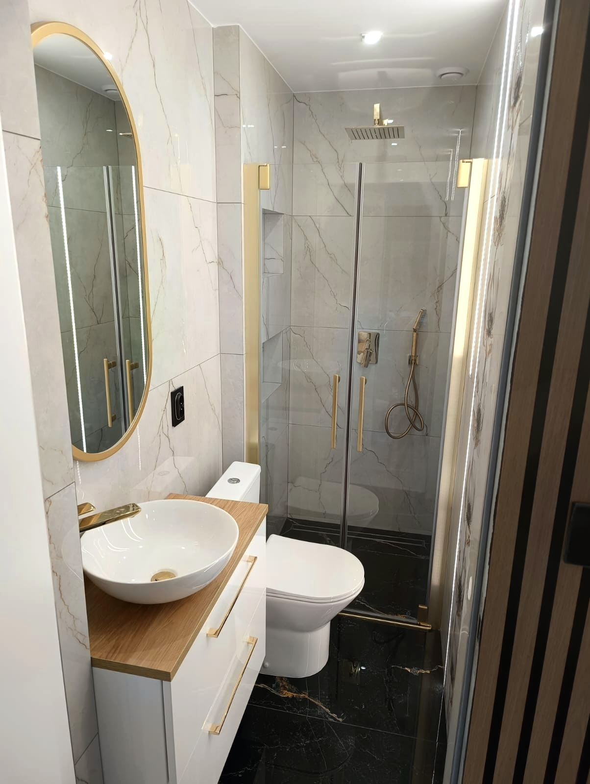 Tym razem remont przeszła mała sypialnia z łazienką . Na życzenie Klienta , została urządzona w klasycznym, ponadczasowym stylu .położone płytki na podłodze w obu pomieszczeniach ,gładzie w sypialni oraz tapeta...